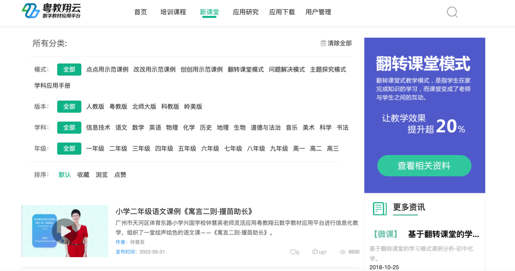 圖:粵教翔云數字教材應用平臺網上課程